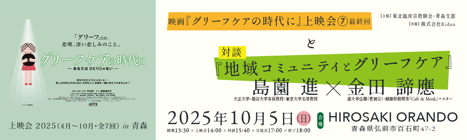 ドキュメンタリー映画『グリーフケアの時代に』上映会(7)と、 島薗 進先生・金田 諦應先生 対談 『地域コミュニティとグリーフケア』